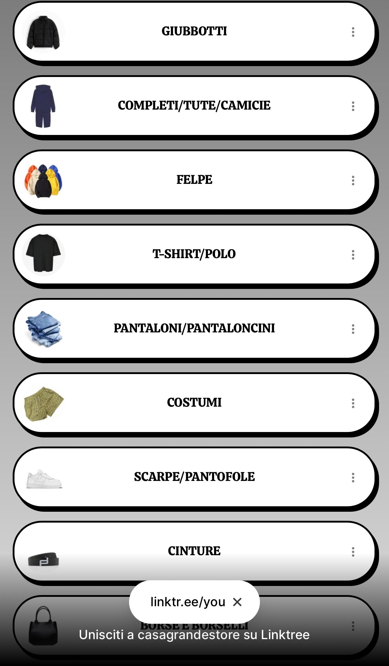 Abbiamo nuovi arrivi e riassortimenti ogni settimana, su questo link potrai vedere tutti gli altri articoli che abbiamo pronta consegna in continuo aggiornamento che potrai ordinare direttamente su whatsapp.
