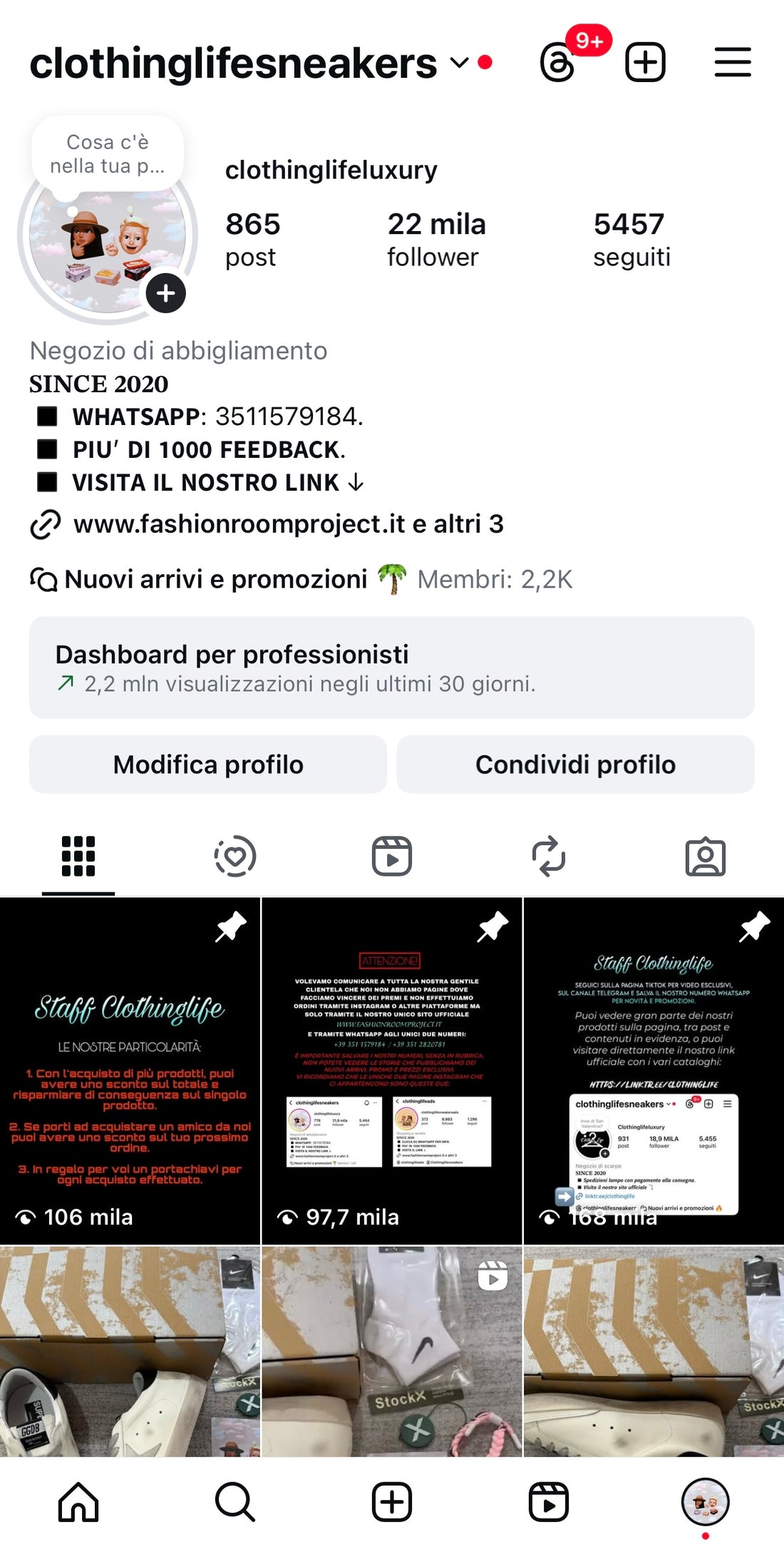 PAGINA PRINCIPALE INSTAGRAM: “CLOTHINGLIFESNEAKERS”